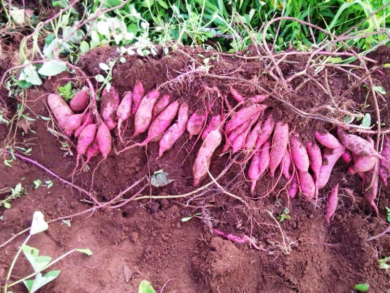 Ngoài ra, bấm ngọn cho cây là một quy trình không thể thiếu. Bấm ngọn được tiến hành sau khi trồng từ 25 – 30 ngày để tăng cường sự phát triển của cây, đẩy mạnh quá trình trao đổi chất hữu cơ. Nhà vườn cần kết hợp làm đứt rễ con bằng cách nhấc dây khoai lang nhật để củ được tập trung toàn bộ chất dinh dưỡng mà không ảnh hưởng đến thân lá.