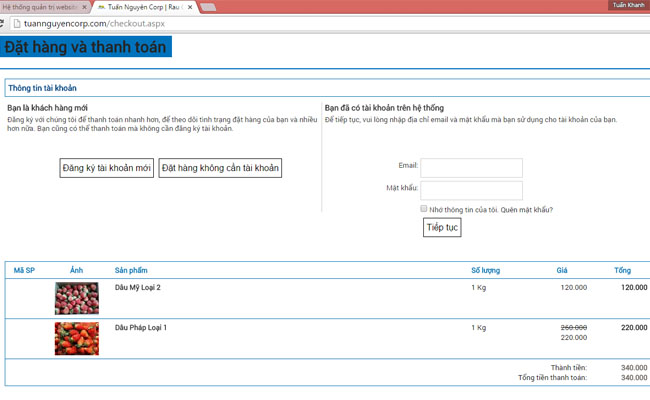 Trong trường hợp, bạn đã có tài khoản vui lòng nhập thông tin tên đăng nhập là email và mật khẩu vào mục đã có tài khoản trên hệ thống để xác nhận đơn hàng.