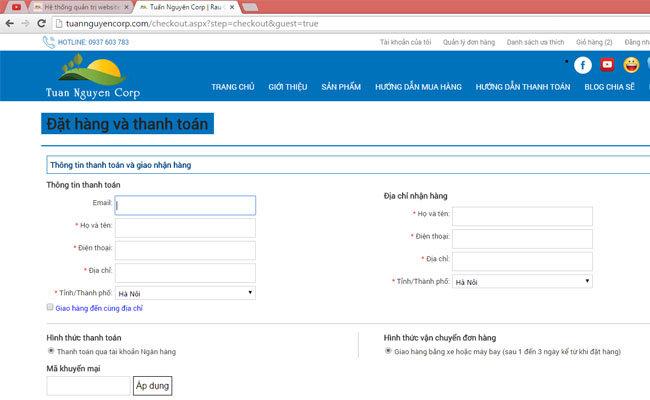 2/ Đặt hàng không cần tài khoản (áp dụng cho khách hàng vãng lai), ít khi đặt hàng).