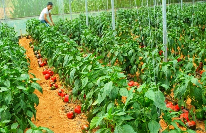 Ta thu hoạch ớt chuông từ vườn vào, lựa ớt chuông đúng tiêu chuẩn sau đó bao nhựa trong và sắp xếp vào thùng, ghi tên và số điện thoại liên lạc người nhận.