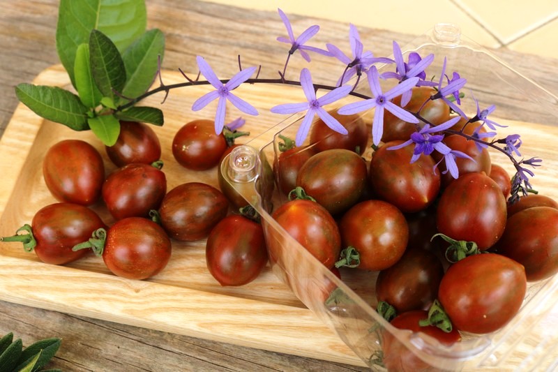 Là một loại cà chua có cái tên vô cùng độc đáo, Cà Chua Bi Socola có đường kính vỏn vẹn 1.5cm và có lớp vỏ màu nâu bên ngoài giống màu socola. Khác với những loại cà chua khác, Cà Chua Bi Socola có hương vị rất đậm đà và vị ngọt thanh rất đặc biệt. Giống cà chua này chứa hàm lượng chất chống oxy hóa cao hơn các loại khác, có tác dụng hạn chế các bệnh về tim mạch, làm chậm quá trình hình thành các tế bào ung thư trong cơ thể... Cà Chua Bi Socola thường dùng để ăn sống như làm các món salad hoặc ăn thay thế trái cây.