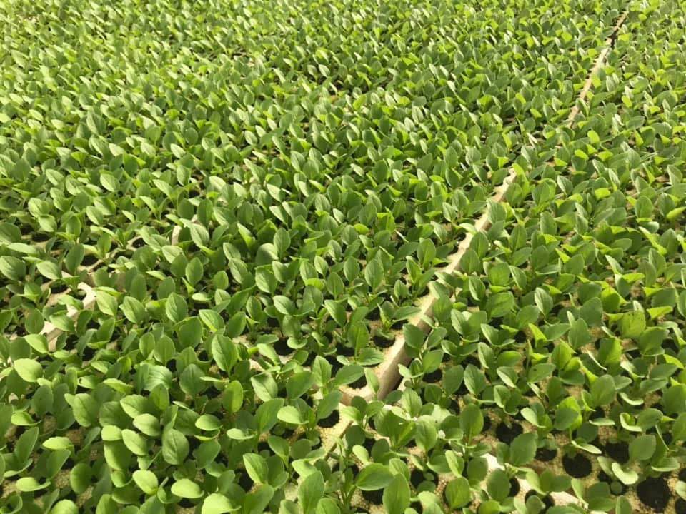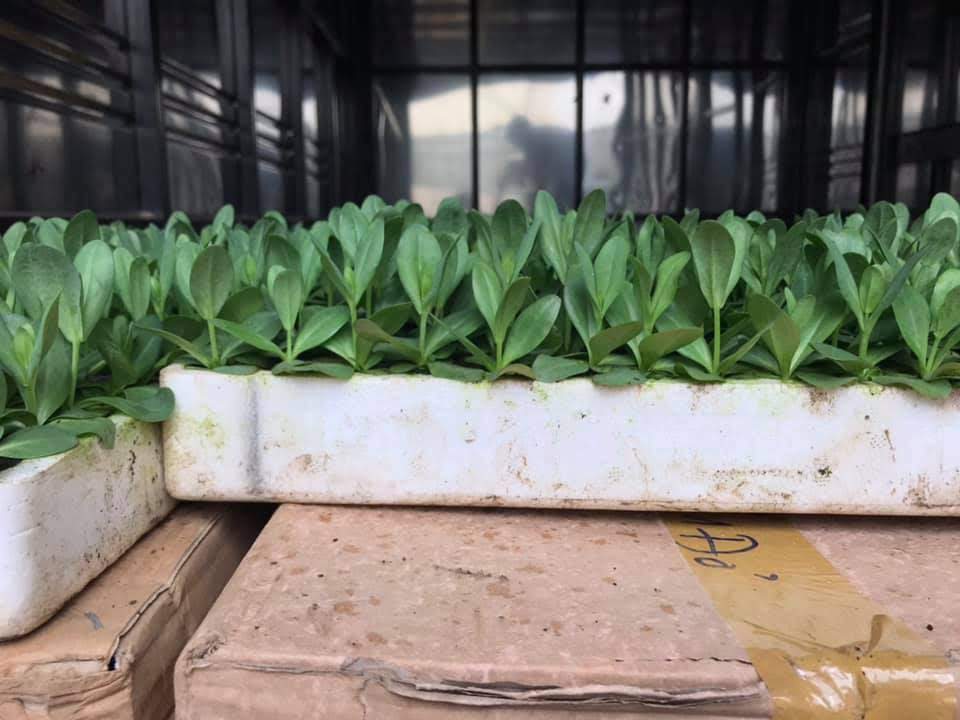 * Quy cách khay: 209 cây/khay, tính 205 cây. Giống gồm: 5 màu sinh trường khoẻ: Xanh, Đỏ, Hồng, Trắng Viền Tím, Trắng Viền Hồng.
