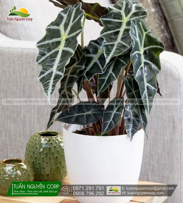 Cây Alocasia Polly có tên thường gọi ở Việt Nam là cây môn quan âm. Alocasia Polly – cây môn quan âm có sức sống khỏe. Được xem là loại cây dễ trồng, dễ chăm sóc, thường được trồng trong chậu trang trí trong nhà, lẫn trang trí ngoài trời.