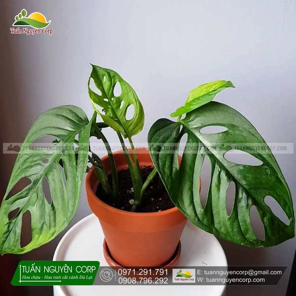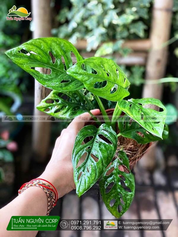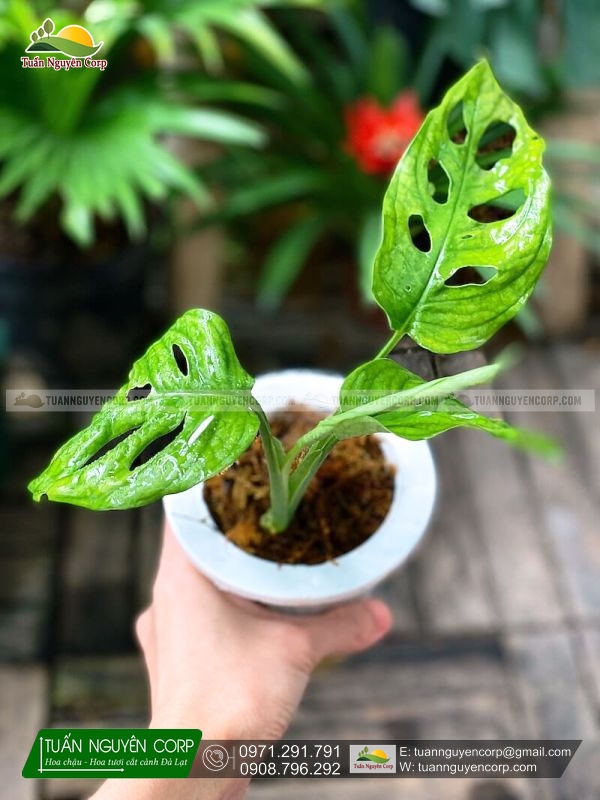Tên thường gọi: Cây trầu bà lỗ đột biến; cây trầu bà cửa sổ đột biến, cây Monstera Adansonii Variegated…