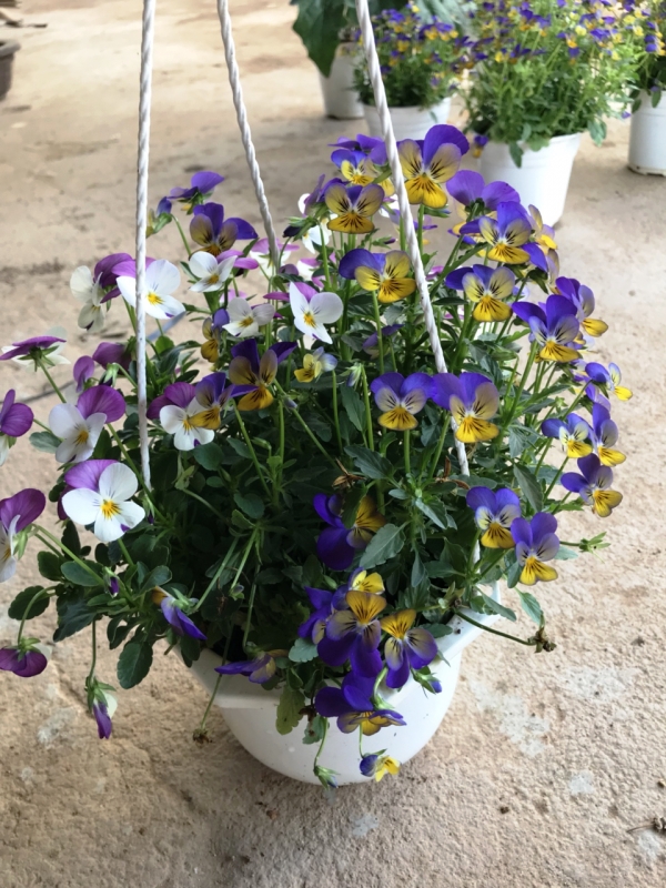 Hoa viola thích hợp trồng trong chậu hoặc giỏ treo để làm đẹp cho ban-công, sân thượng, hành lang hoặc bất cứ không gian nào.