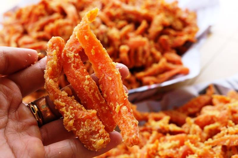 Ngoài khoai lang sấy dẻo nổi tiếng ở Đà Lạt còn có khoai lang sấy gừng. Khi tiết trời chuyển mùa và se lạnh người dân nơi đây thường thưởng thức món ngon này để giữ ấm cơ thể. Vị ngọt của khoai hòa quyện với chút cay nồng của gừng tạo hương vị quen thuộc và ấm cúng.