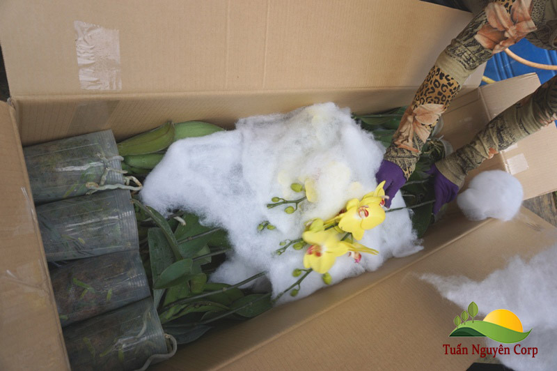 Hoa sẽ được bao gói cận thận tránh bị rụng hoa, gãy cành trong quá trình vận chuyển, rồi đóng thành thùng sau đó ghi rõ tên, địa chỉ, số điện thoại người nhận.