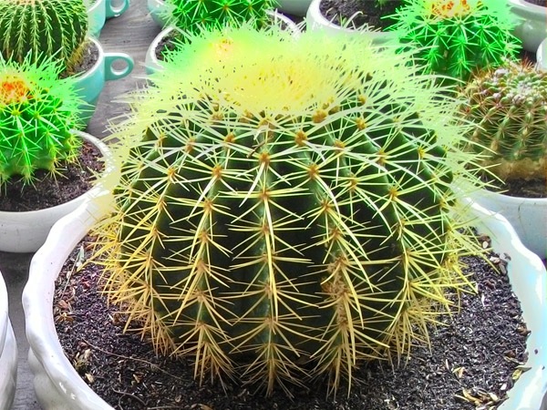 Cây kim hổ là loại thực vật thân thịt có gai lâu năm. Thân cây có màu xanh sẫm, hình cầu, có góc cạnh với màu lông vàng và gai dẹt màu vàng kim. Sương rồng kim hổ rất thích hợp gttang trí bàn làm việc, góc học tập, sân vườn...